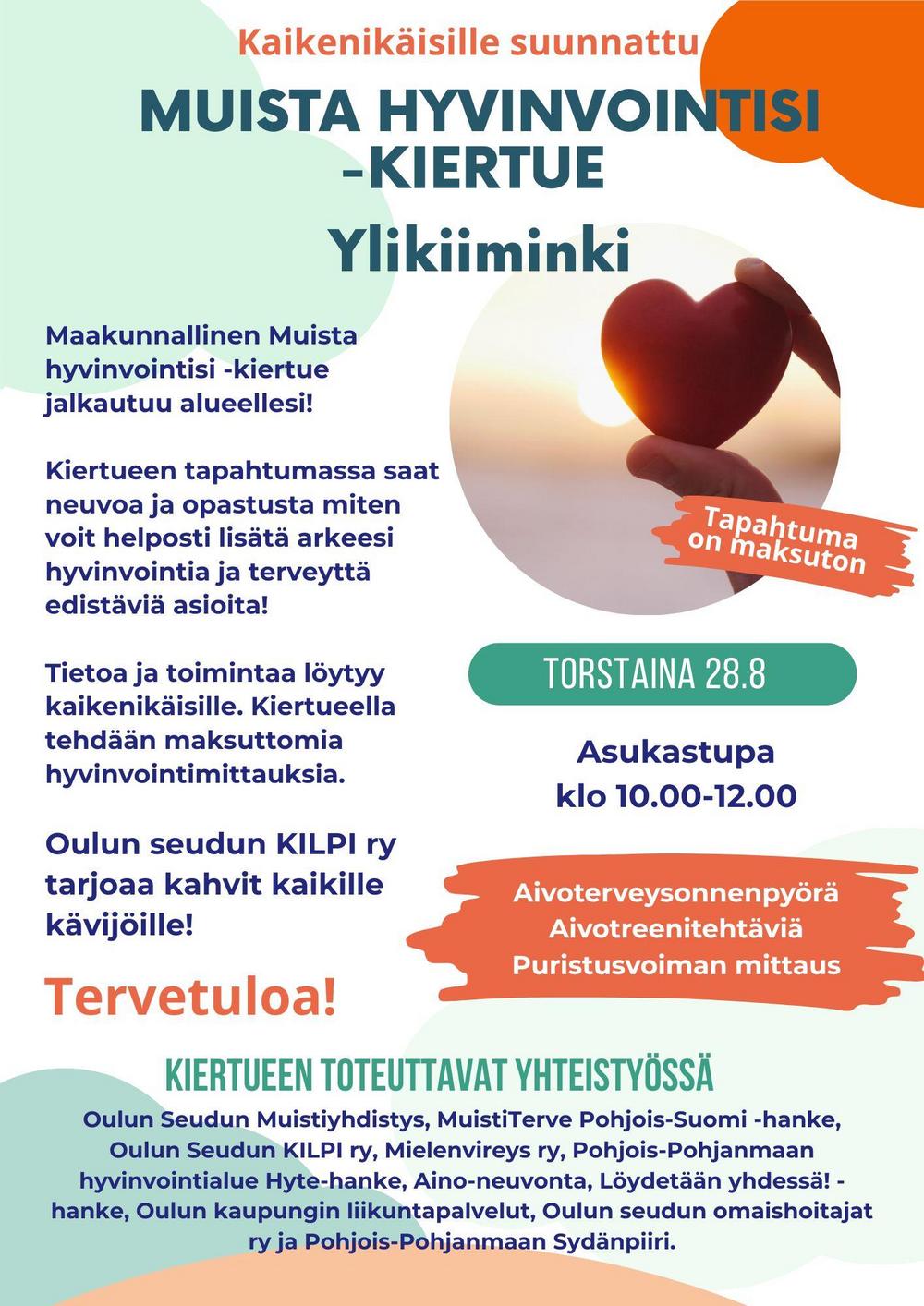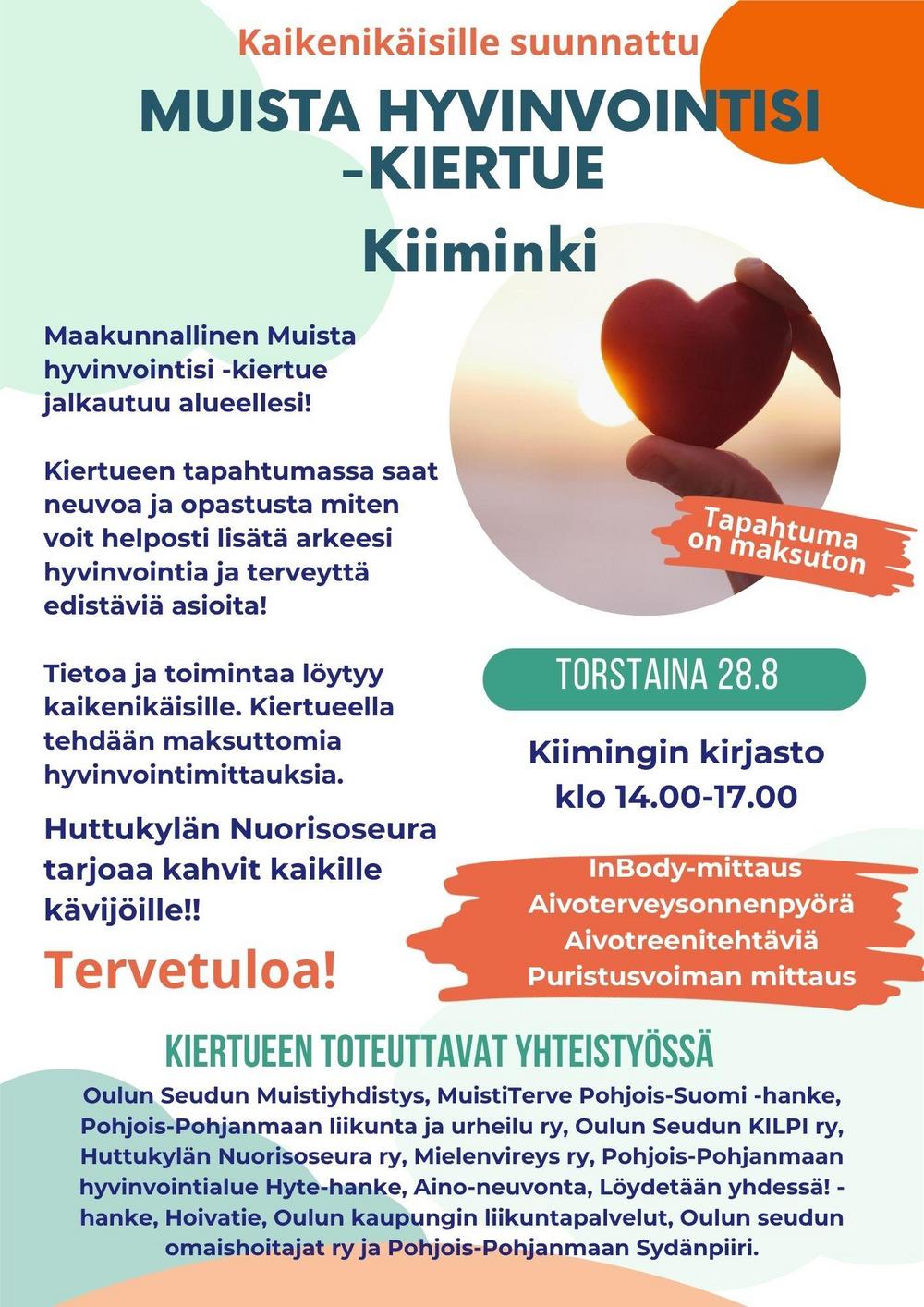Tapahtumassa saat neuvoa ja opastusta, miten voit helposti lisätä arkeesi hyvinvointia ja terveyttä edistäviä asioita. Tietoa ja toimintaa löytyy kaikenikäisille.